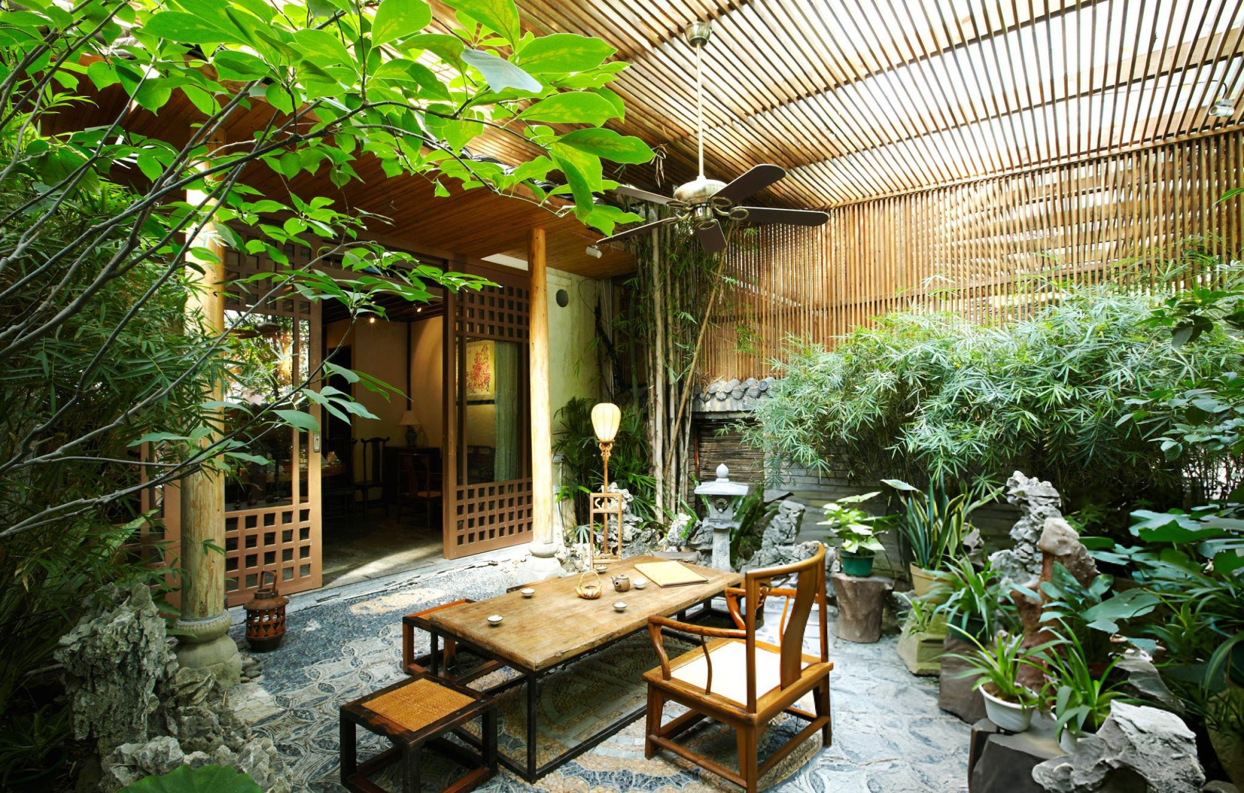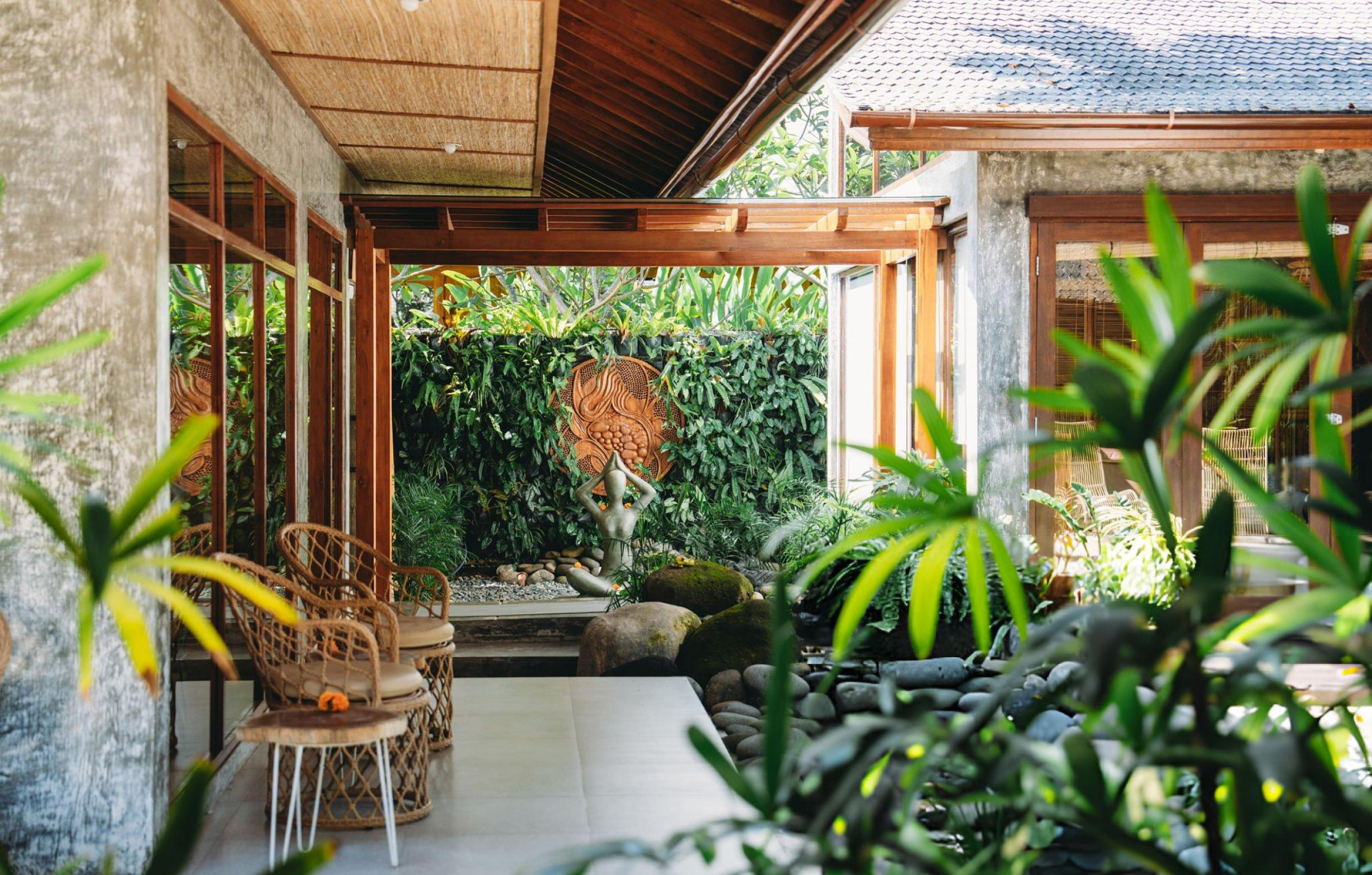 Use of local materials such as bamboo, teak, volcanic stone, alang-alang thatch, clay bricks, coconut wood. These offer thermal comfort, local authenticity and connection to nature.