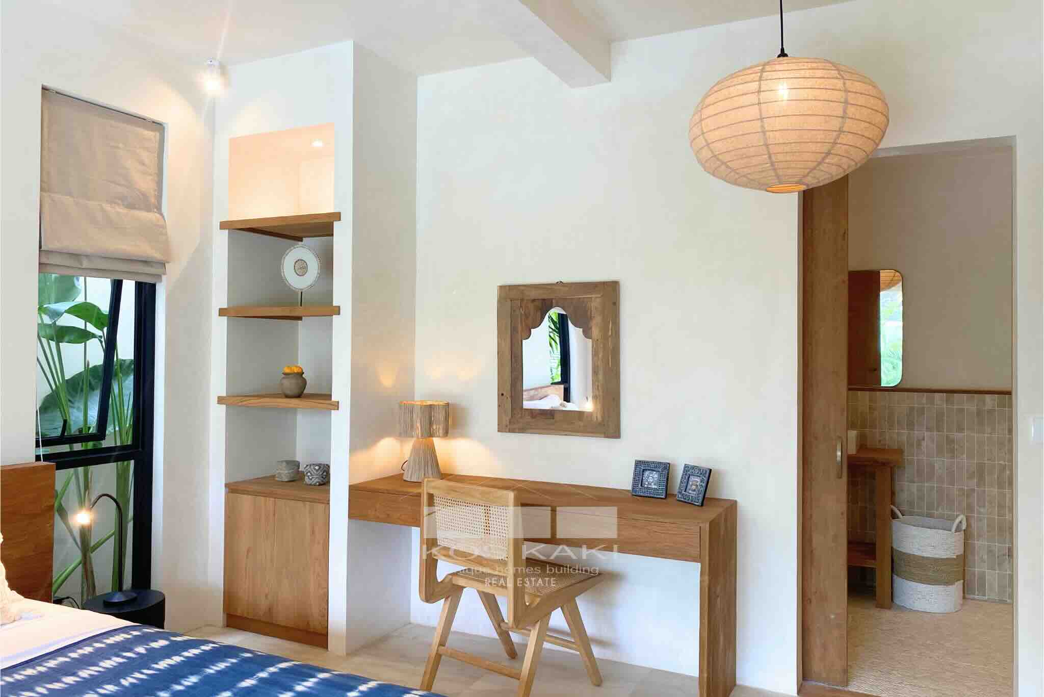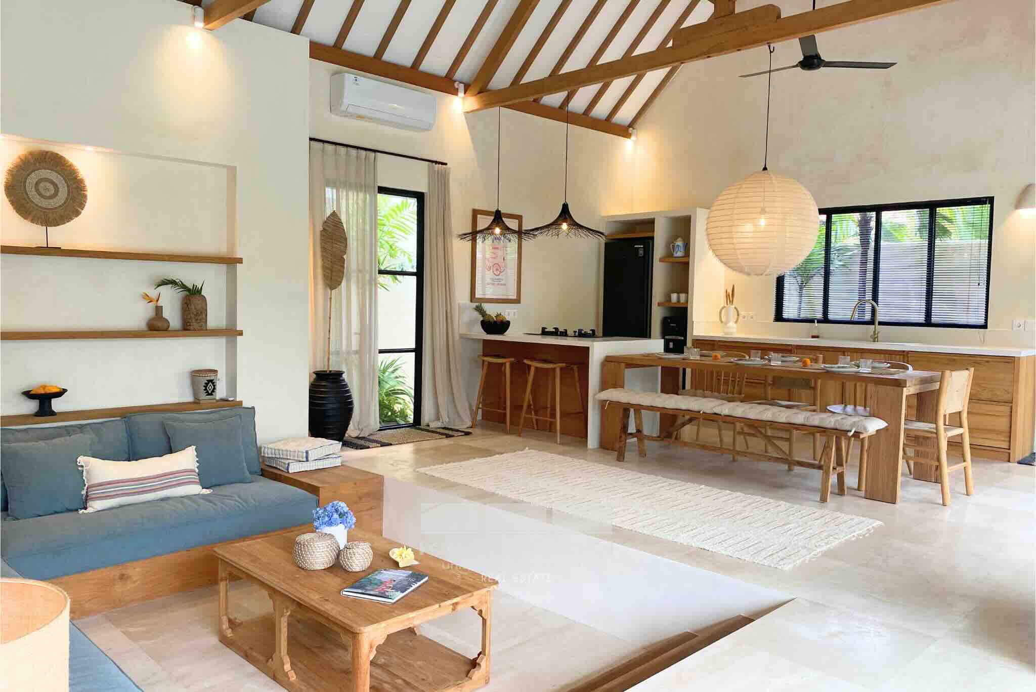 The property features a modern 2-bedroom villa, thoughtfully designed with natural wood and stone finishes. Each villa is filled with natural light, offers excellent air circulation, and comes fully furnished, ready to move in.