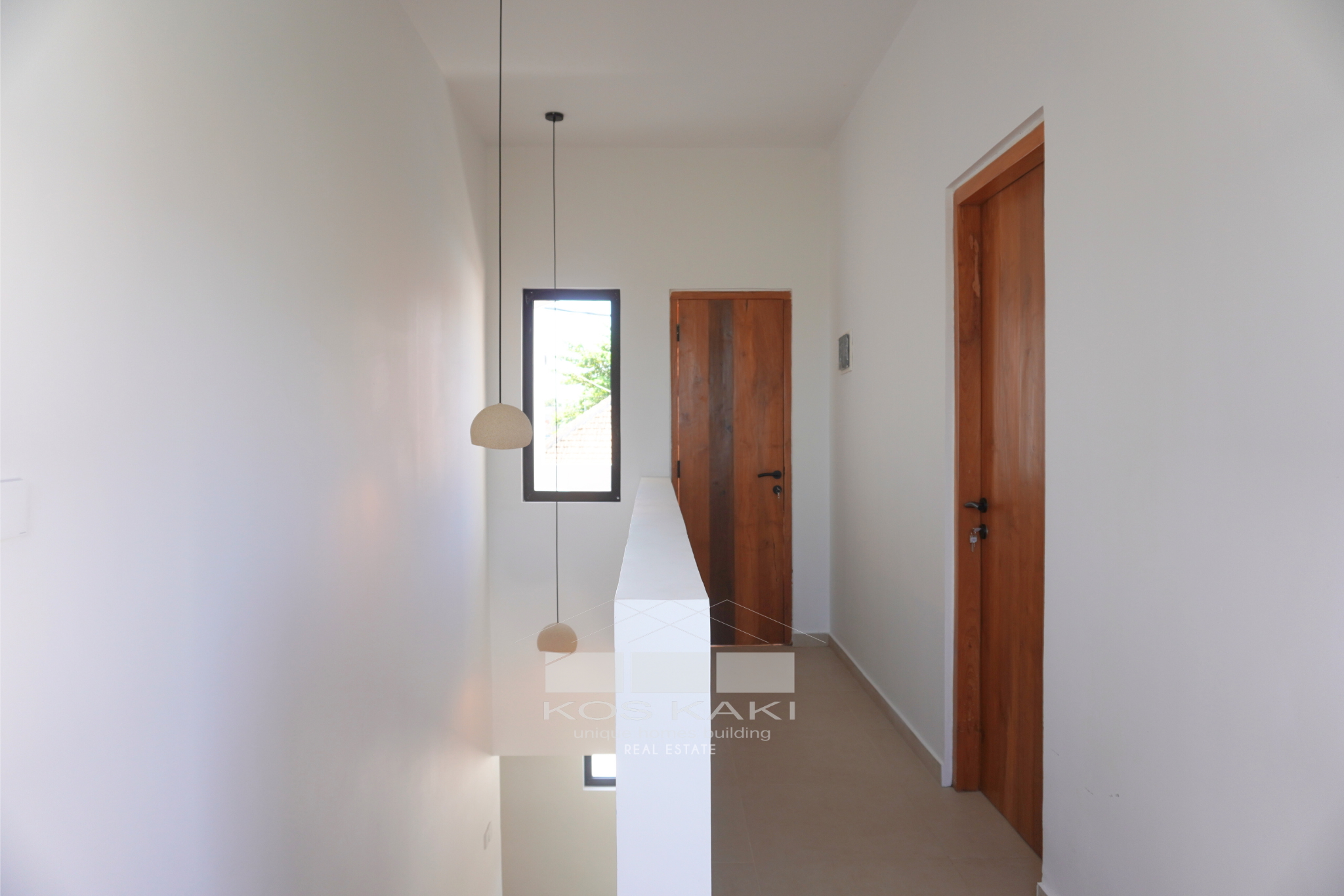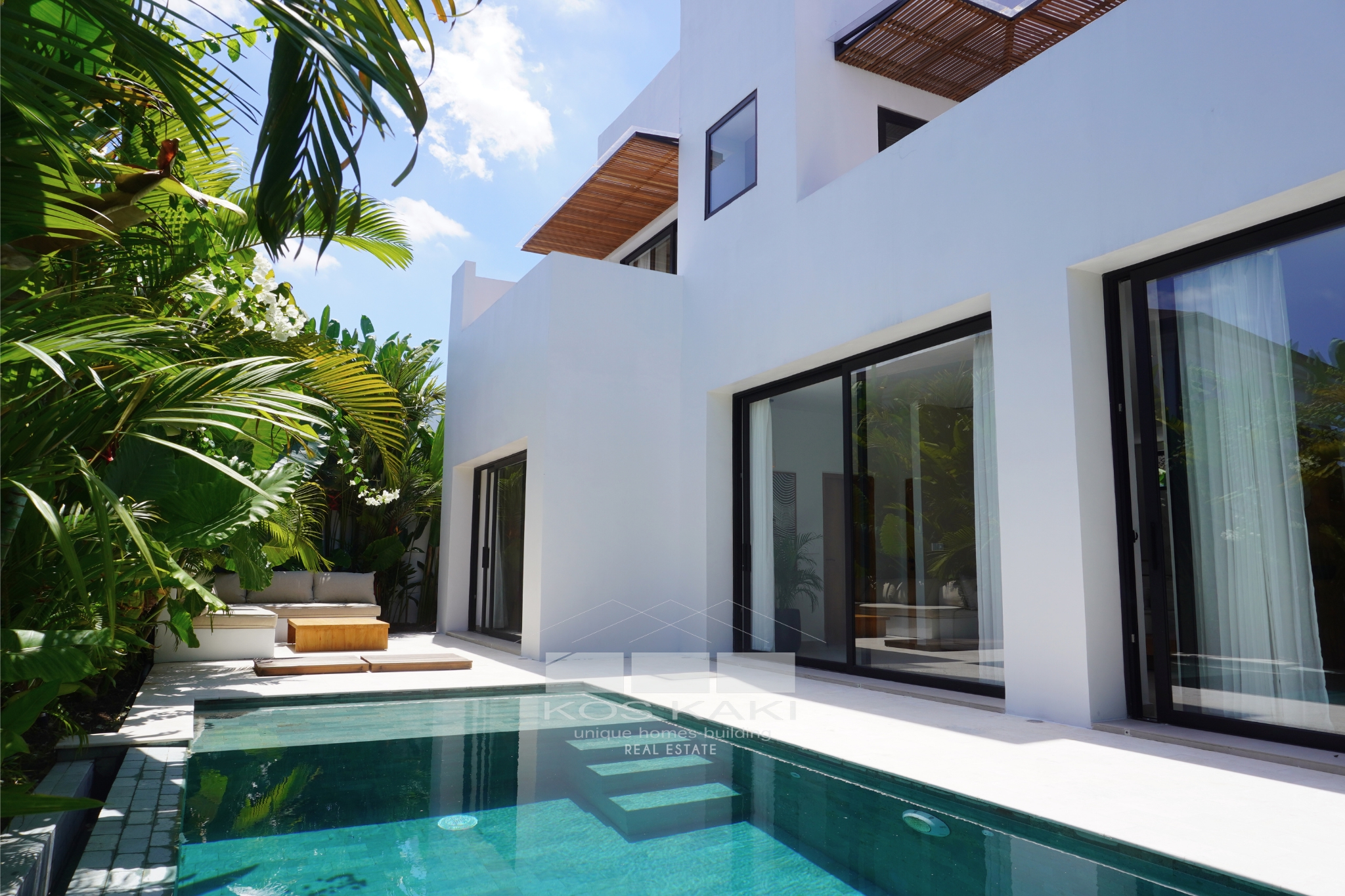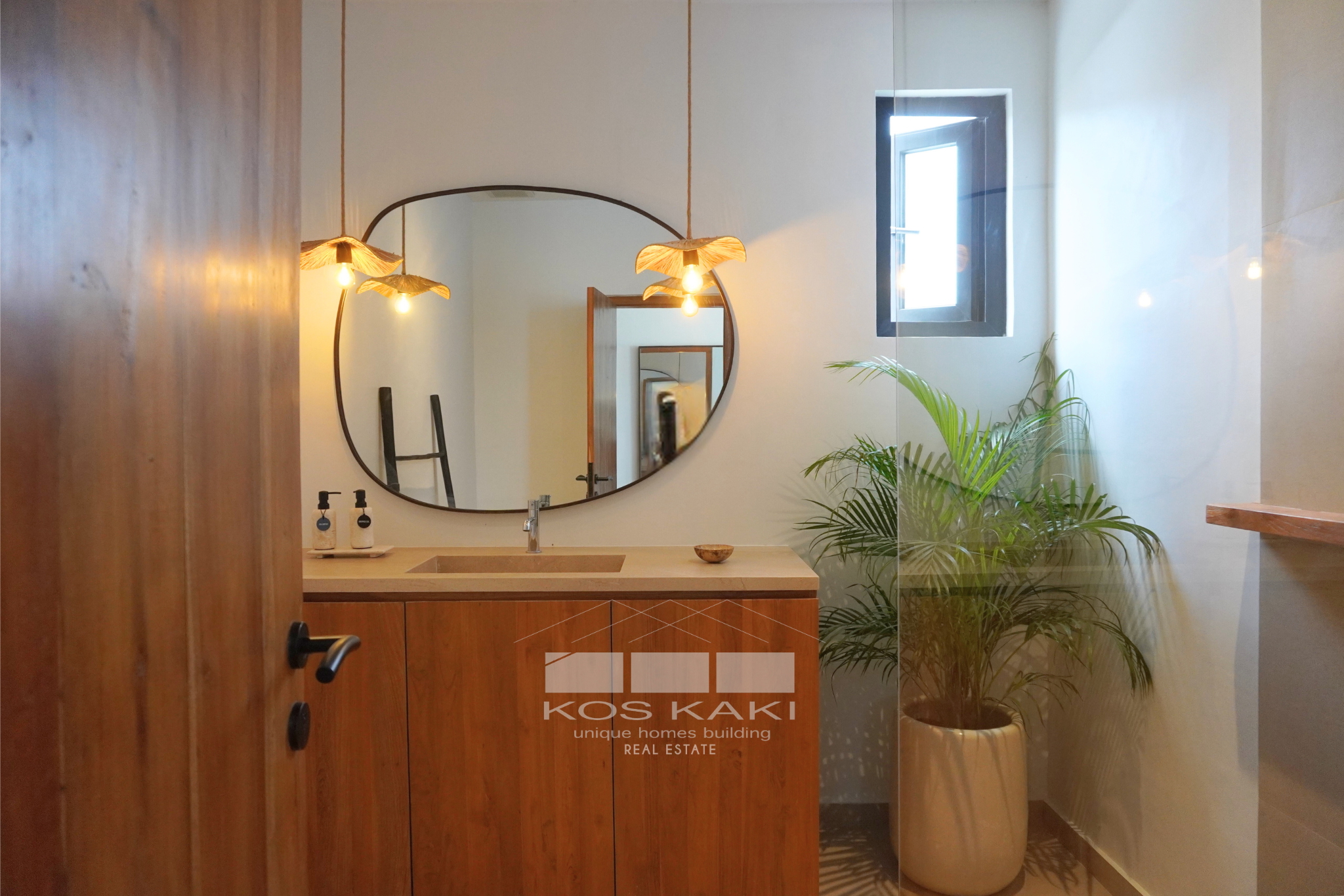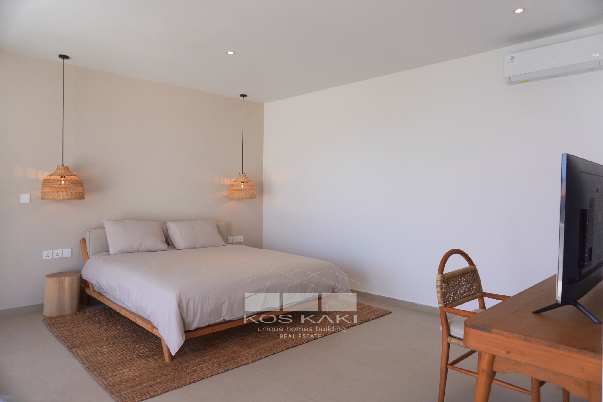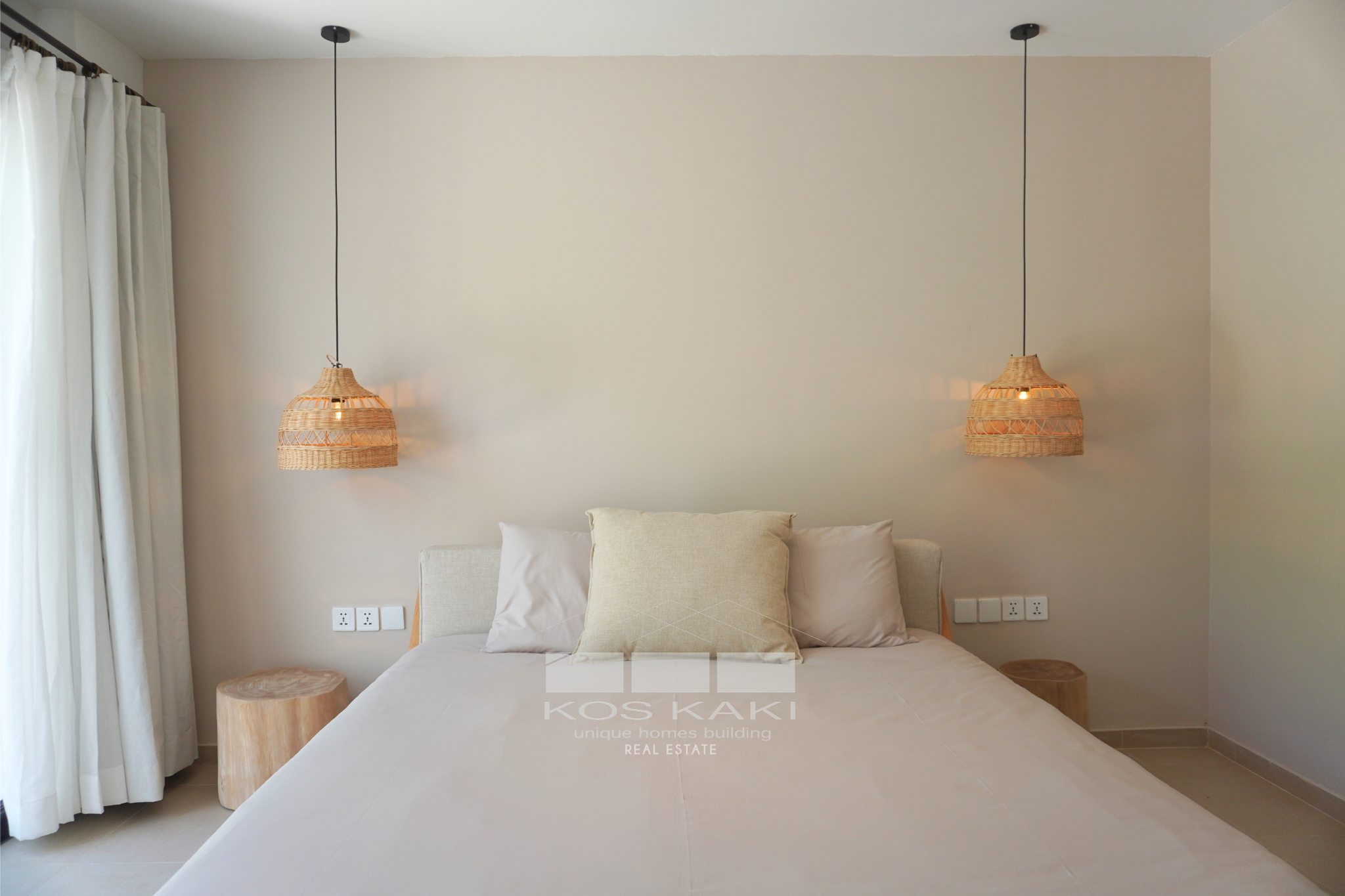 This second unit of the three villas offers a slightly larger living area, creating a more seamless flow between the living room, kitchen, and pool. The open-plan design gives everyone in the house the freedom to move comfortably while still feeling connected.